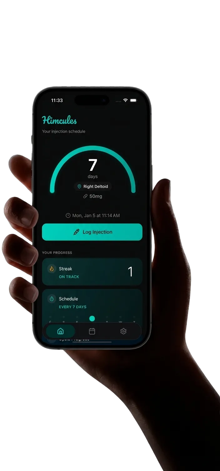Calendar reminders don't track sites, calculate streaks, or show your doctor adherence data. Period trackers weren't built for pinning. TRT has its own rhythm—Himcules was built from scratch to match it.